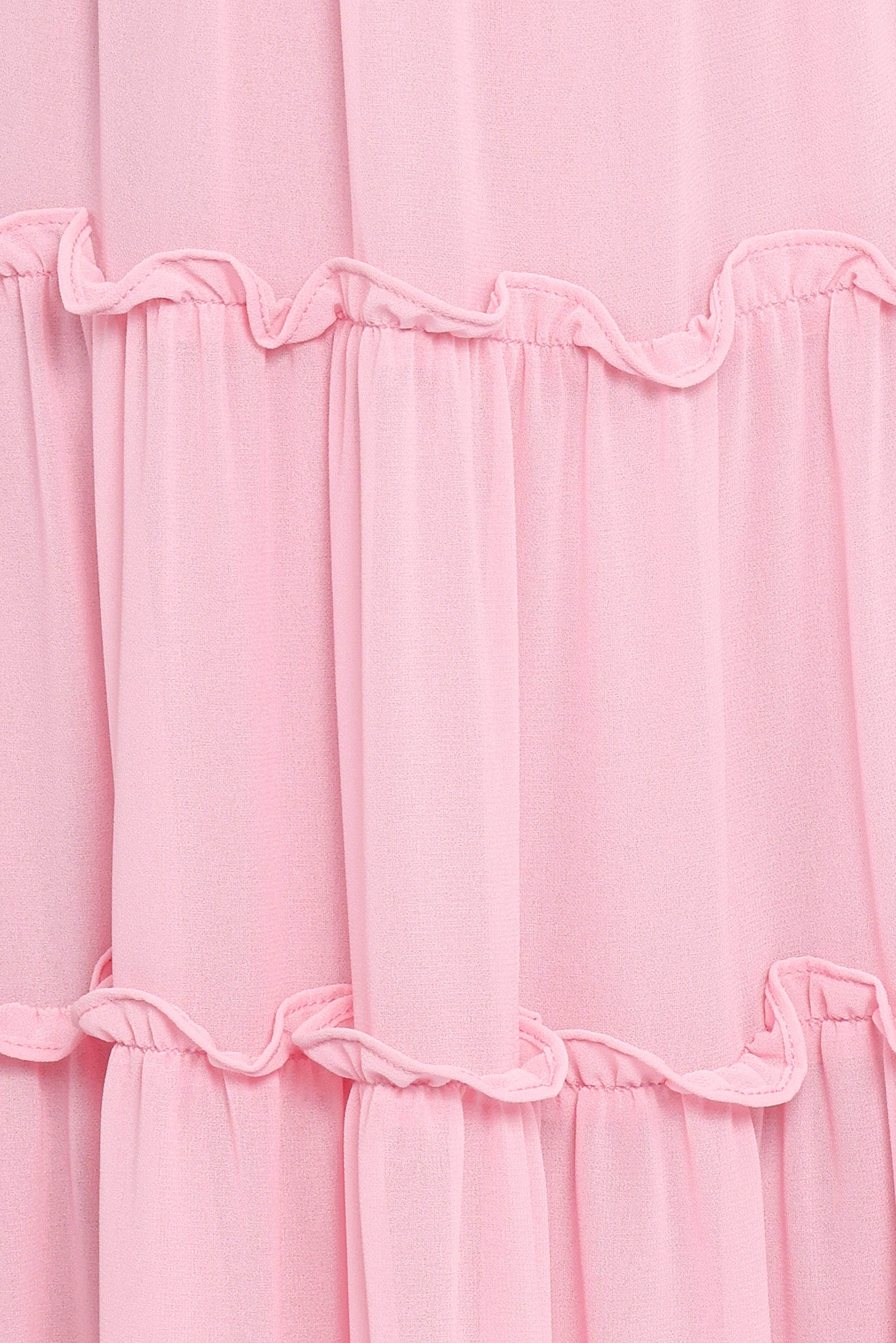 Effortlessly elegant and undeniably on-trend. the Dottie Halterneck Maxi Dress in Pink is your ultimate statement piece for any occasion. Its flowy maxi length and drop-tiered skirt design offer a dramatic yet refined silhouette. while the ruffle trim add a touch of playful texture.